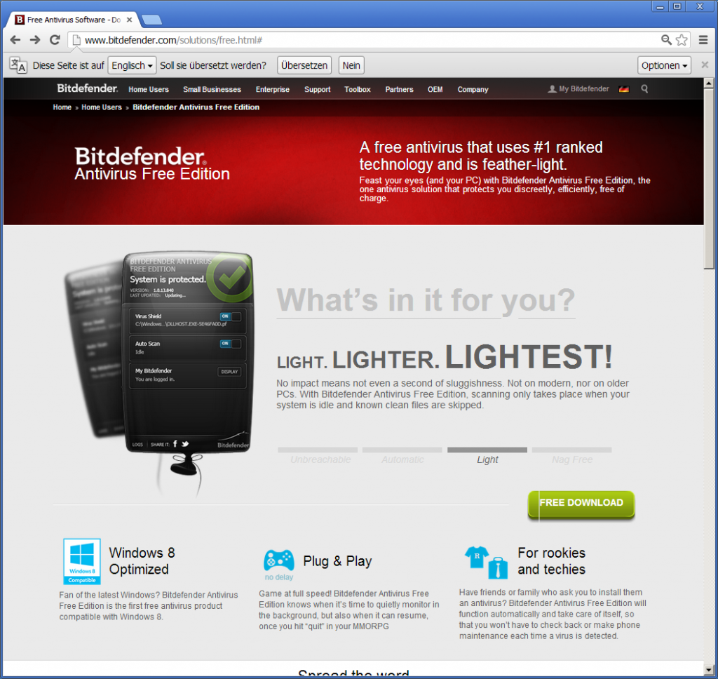 Bitdefender Antivirus Free für PC - Kostenlos downloaden Bitdefender Antivirus Free Edition nutzt dieselbe Bitdefender-Technologie, die sich auch in den letzten 10 Jahren in unzähligen unabhängigen Branchentests bestens bewährt hat. Bitdefender Antivirus Free Edition ist schnell installiert, äußerst benutzerfreundlich und reagiert umgehend auf Cyberbedrohungen, ohne dabei die Leistung Ihres ...