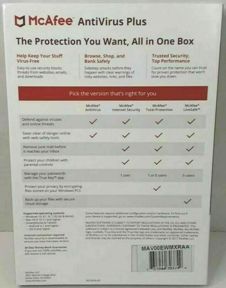 Mcafee antivirus plus 1 pc